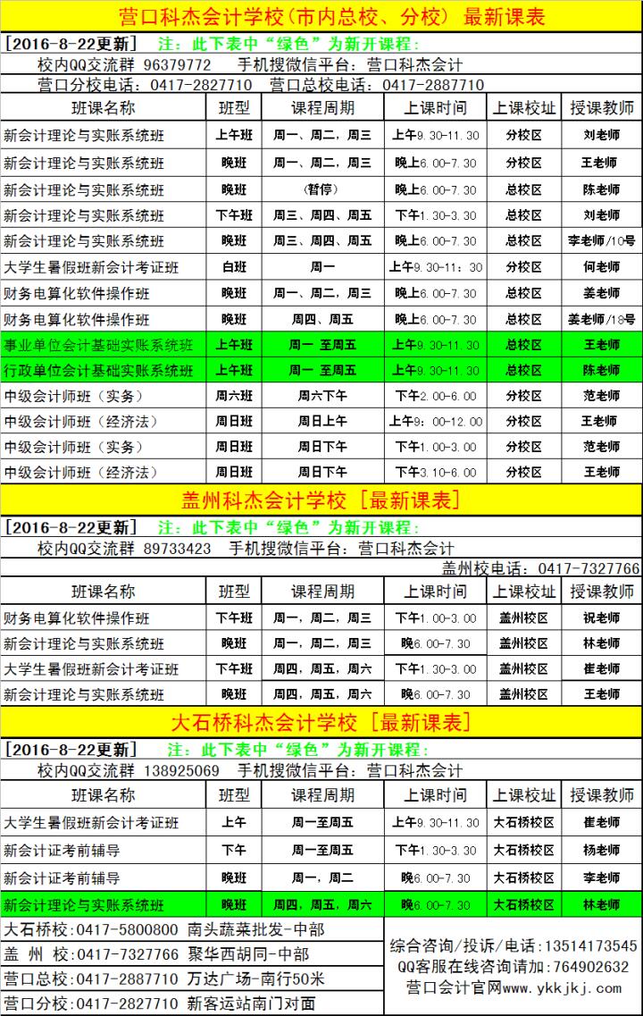 [2016-8-22更新]营口科杰会计各校区正在进行最新课表