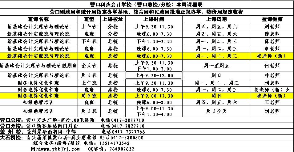 科杰会计-营口总、分校课时总表-8月19日发: