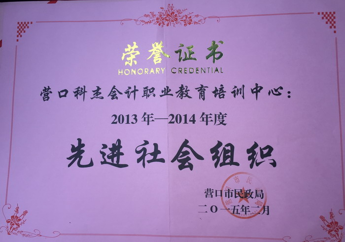 市民政局经评并授予营口科杰会计学校先进办学单位